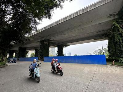 ⓞ沿雅坪新街向西骑行581米直行