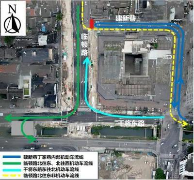 ⓞ沿环城路建新巷向东北骑行27米到达目的地
