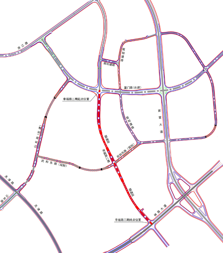 ![]() 幸福东路与幸福路交叉口>>位置示意图 |