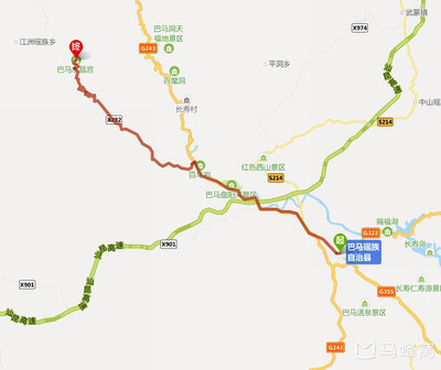 ➤沿621乡道向北步行1215米向右前方行走