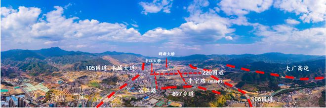 沿大峃岭隧道途径新丰路向东北行驶2.2千米到达目的地