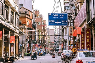 ➤沿潘溪路向东步行981米向右前方行走