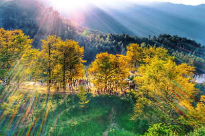 ➤沿山黄线向东北步行1091米向左前方行走