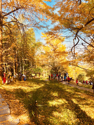 ➤沿山黄线向东北步行562米向左前方行走