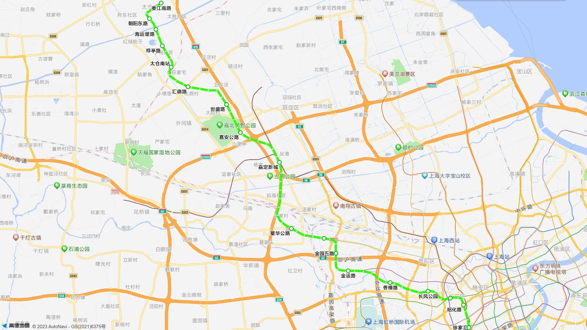 ➤沿104国道向西北步行439米直行