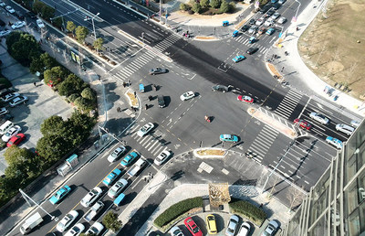 向东北行驶108米离开环岛