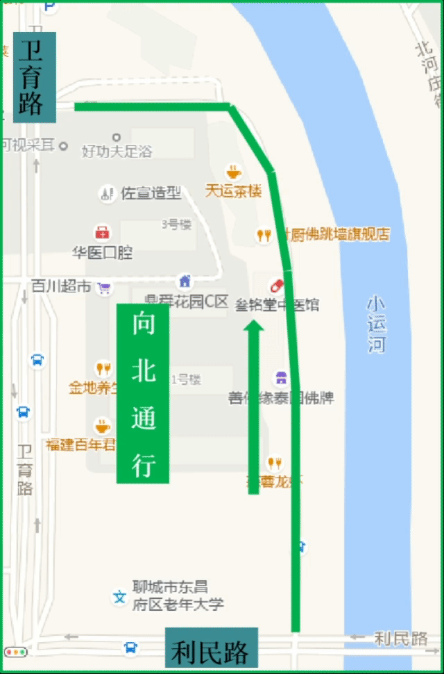 ➤沿环城东路向北步行130米右转