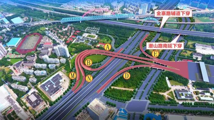 ⓞ沿过境路辅路向北骑行231米左转