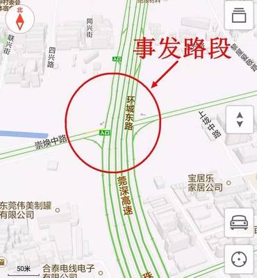 沿G1523甬莞高速出口向西北行驶167米向右前方行驶进入右转专用道