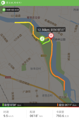 ⓞ沿南九路向北骑行499米向右前方行驶