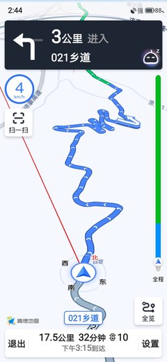 ➤沿021乡道向东北步行1939米左转