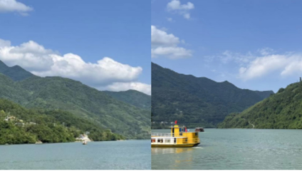 ☸坐轮船来杨柳潭水库在附近港口码头:温州楠溪江石桅岩-渡口|距离:10168m (浙江省温州市永嘉县石桅岩景区内)下船