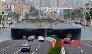 沿104国道向东行驶345米直行进入隧道