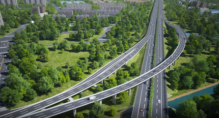 ⓞ沿过境路辅路向北骑行231米左转