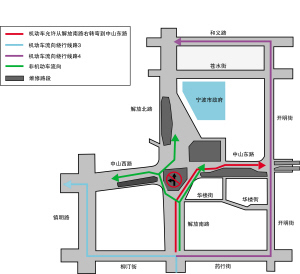 ⓞ沿交通西路向东骑行105米直行