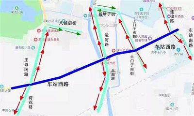 ➤沿站前路向西南步行360米向左前方行走