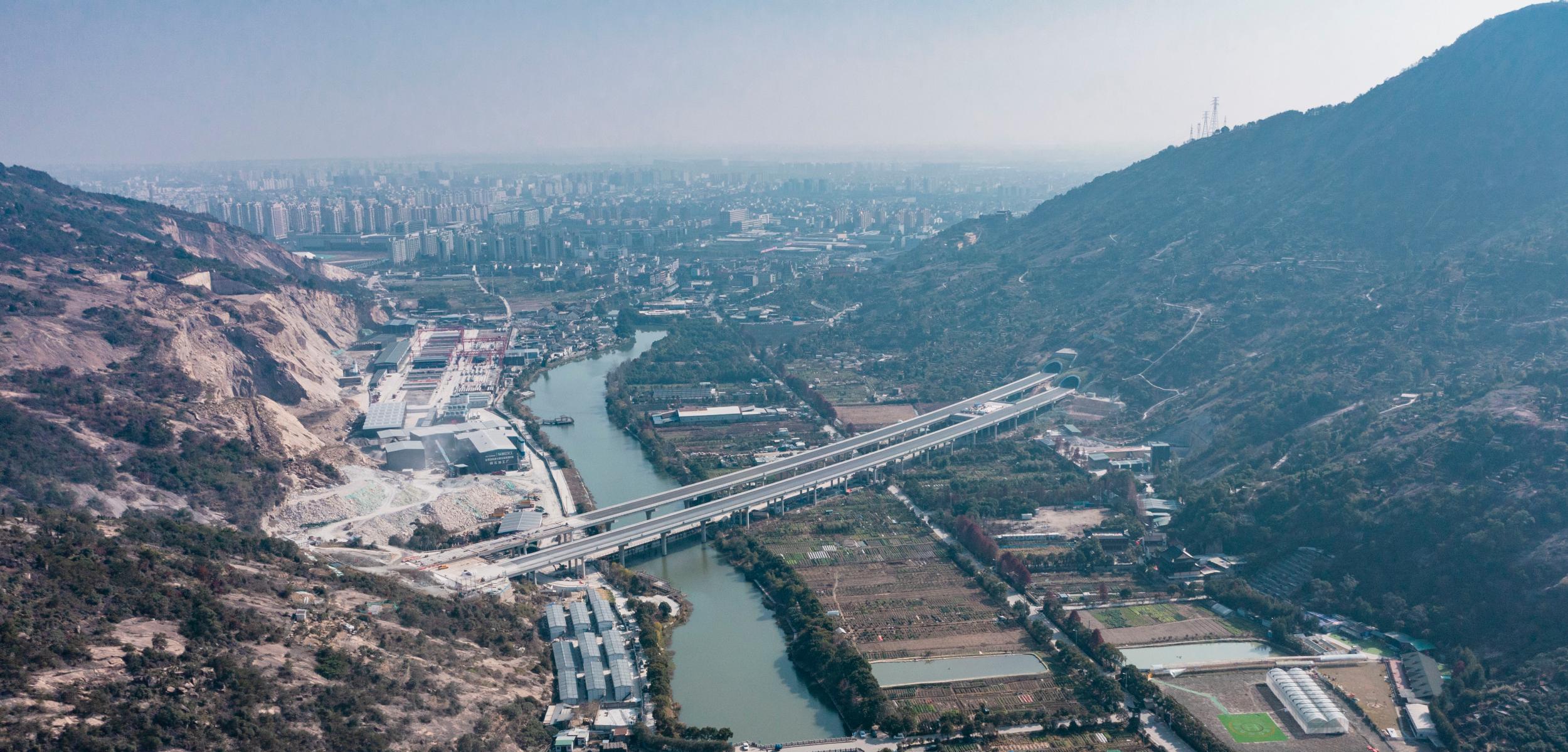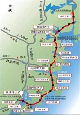 沿G15沈海高速途径白鹭屿大桥、高岙大桥、张家湾高架桥、湖东高架桥、刘宅高架桥、乐清湾高架桥向东北行驶35.3千米靠左