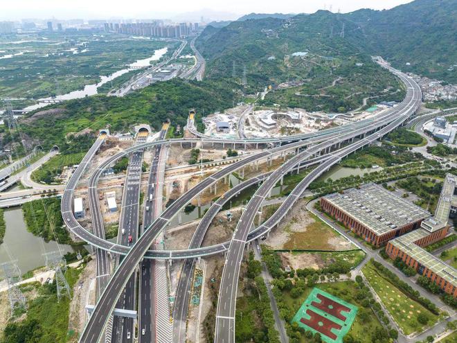 沿杏湾山隧道途径G15沈海高速、门前墩大桥向东北行驶1.7千米直行进入隧道