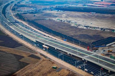 沿七都大桥途径104国道向东北行驶2.0千米靠右