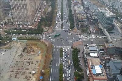 沿七都大桥途径104国道向东北行驶2.0千米靠右