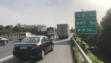 沿温州东互通A匝道桥向南行驶329米减速行驶到达收费站