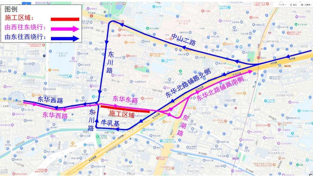 ⓞ沿交通东路向东骑行516米向右前方行驶
