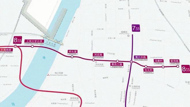 沿钱江路向东北行驶556米右转