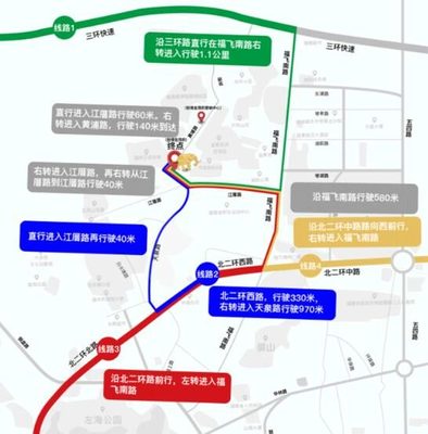 ⓞ沿三江大道向南骑行585米左转