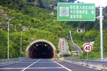 沿104国道向东北行驶2.7千米直行进入隧道