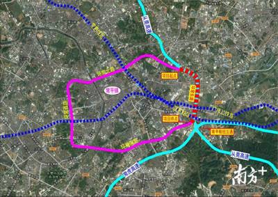 沿狮子山隧道途径望雁路、104国道向北行驶2.1千米直行进入隧道