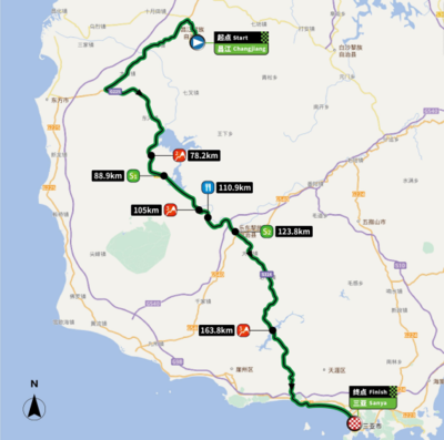 ➤沿104国道向北步行5079米直行