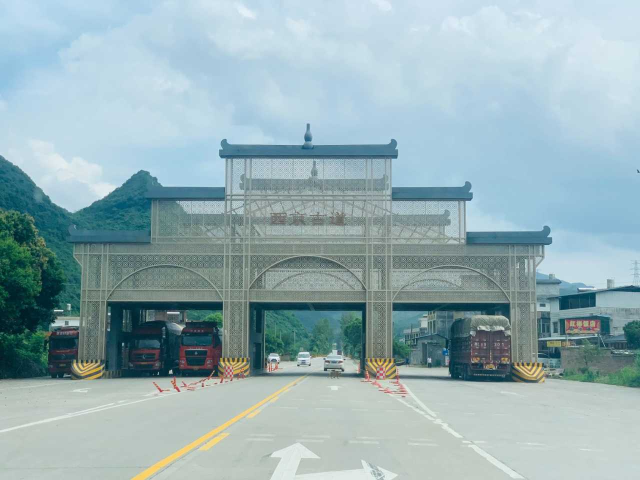沿牛岩隧道途径104国道向东行驶1.1千米左转