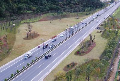 ⓞ沿过境路辅路向北骑行231米左转