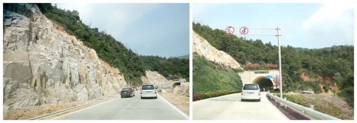 沿104国道向东行驶345米直行进入隧道