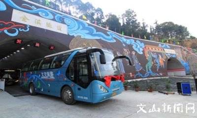 沿41南复线省道向西南行驶900米直行进入隧道