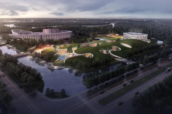 ➤沿广场路向南步行1358米向右前方行走