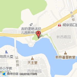 公共厕所位于新桥街道西山西路68号(吉的堡艳洁幼儿园新桥分园)幼儿园西北方向133.504米的位置。
