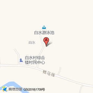 公共厕所位于钱马线(白水游泳池)游泳馆北方向135.324米的位置。