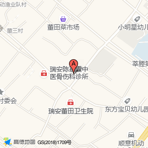 公共厕所位于董田董三村板桥头振福路76号(瑞安陈慕霖中医骨伤科诊所)骨科医院西方向127.865米的位置。