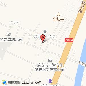 公共厕所位于瑞安市(金后村)村庄级地名西北方向254.515米的位置。