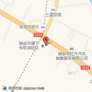 瑞安市塘下专职消防队占地面积约:1497㎡和浙江省温州市瑞安市塘下镇MHPC闽海温州塘下加油站(塘下镇上金村路口104国道旁)相距 ⇄ 3.87444m