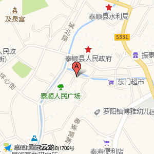 公共厕所位于罗阳镇广场路1号(美家乐(泰顺广场路店))快餐厅西北方向65.8064米的位置。