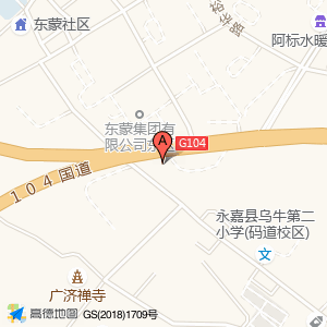 东蒙集团有限公司东区占地面积约:12948㎡和浙江省温州市永嘉县乌牛街道104国道乌牛加油站(乌牛街道西湾村104国道与东蒙路交叉口东)相距 ⇄ 49.4555m
