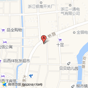 | 所属类型:公用电话 | 地址:浙江省温州市乐清市柳市镇大桥路90号乐清市电力实业有限公司柳白项目部(兆丰西路与繁华北路交叉口东南20米) |